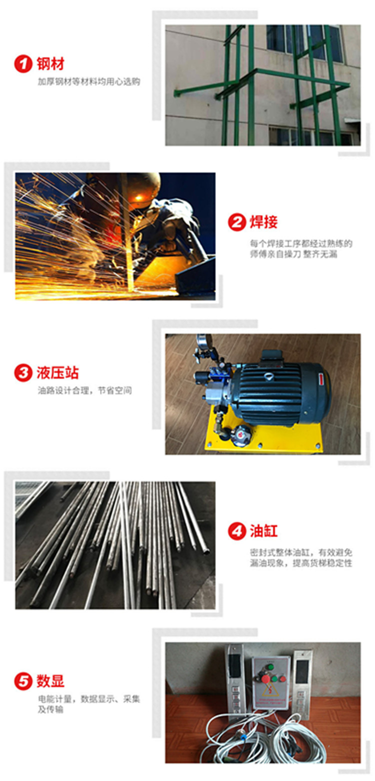 導(dǎo)軌式液壓貨梯、貨物提升機主要用各種工作層間貨物上下運送;立體車庫和地下車庫二層以上高樓間、無法開挖地坑場所、頂層高度不能到達要求的場合等比較難解決的狹小空間,濟南沃力宸升降機械有限公司將竭盡全力為你打量身打造高效率的送貨平臺,產(chǎn)品液壓系統(tǒng)設(shè)置防墜、上下層門互動連鎖,各樓層和升降臺工作臺面均可設(shè)置操作按鈕,實現(xiàn)多點控制。產(chǎn)品結(jié)構(gòu)堅固,承載量大,升降平穩(wěn),安裝維護簡單方便,是經(jīng)濟實用的低樓層間替代電梯的理想貨物輸送設(shè)備。 根據(jù)升降臺的安裝環(huán)境和使用要求,選擇不同的可選配置,可取得更好的使用效果,
